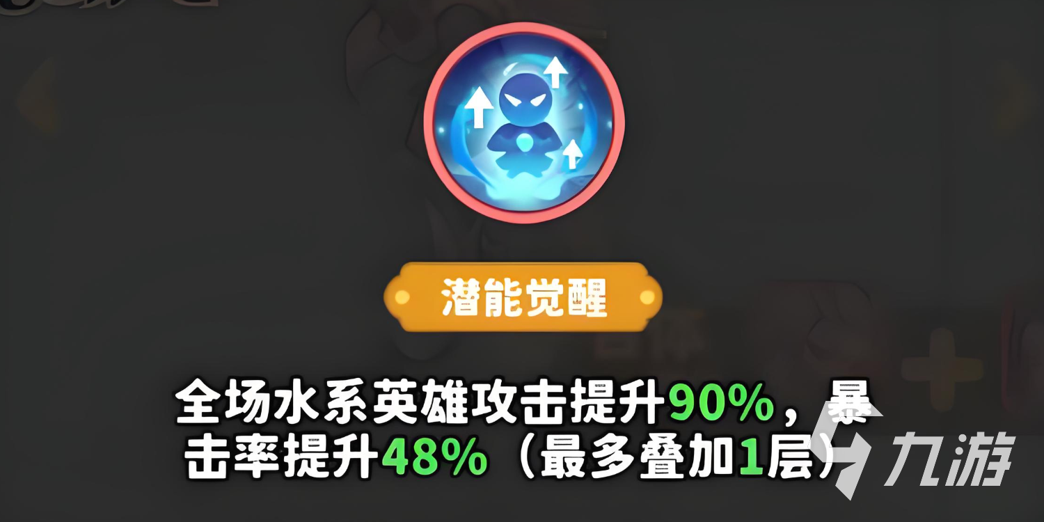 二技能是一個(gè)增加暴擊率和攻擊力的技能,滄溟龍神可以為隊(duì)伍中所有水系的卡牌提升90%的攻擊力以及高額的暴擊率。如果說玩家想要組建一套全為水系卡牌的陣容的話,那么這個(gè)技能帶來的提升是不可估量的。因?yàn)殛?duì)伍中每個(gè)水系的卡牌都可以吃到這個(gè)BUFF,就連一些偏功能性的卡牌,都可以打出一個(gè)比較高的輸出。