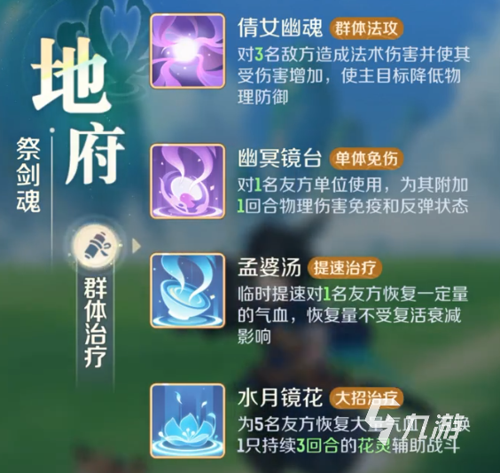 這個門派在當(dāng)下的定位是屬于團隊的輔助,本身也有著一定的輸出能力,在各個副本里面都有著不錯的表現(xiàn),它是輔助能力很強,但是治療能力很弱,這點和地府正好相反。1技能對敵方4人造成傷害,并同時恢復(fù)我方4人的生命值,還隨機復(fù)活1名友方。2技能是給己方4人提高物理攻擊能力,持續(xù)3回合。3技能是讓友方4人提升物理防御能力,持續(xù)4回合。4技能為友方清除負(fù)面和封印狀態(tài),恢復(fù)一定氣血。大招是讓友方可以再行動一次,同時傷害以及速度都會得到加強。