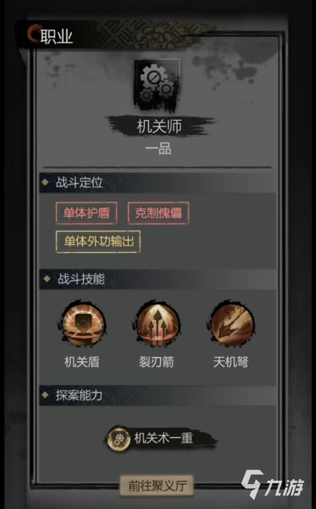第2個(gè)劍客以外功輸出為主,具備點(diǎn)穴能力。這里的劍客并不是脆皮,而具是具有一定的生存能力,可以對(duì)敵方進(jìn)行單體輸出和控制。第3個(gè)刺客,輸出能力非常強(qiáng)大,單體戰(zhàn)斗中優(yōu)勢(shì)明顯,對(duì)于一些低血量的對(duì)手,甚至可以實(shí)現(xiàn)秒殺。技能效果方面具備了單體持續(xù)輸出、流血、中毒等,需要玩家有較好的生存能力和操作能力發(fā)揮優(yōu)勢(shì)。第4個(gè)機(jī)關(guān)師,機(jī)關(guān)師是傀儡的克星,也是外攻輸出能力非常不錯(cuò)的職業(yè),在團(tuán)隊(duì)中可以發(fā)揮出全面的作用,是陣容中必須要攜帶的。