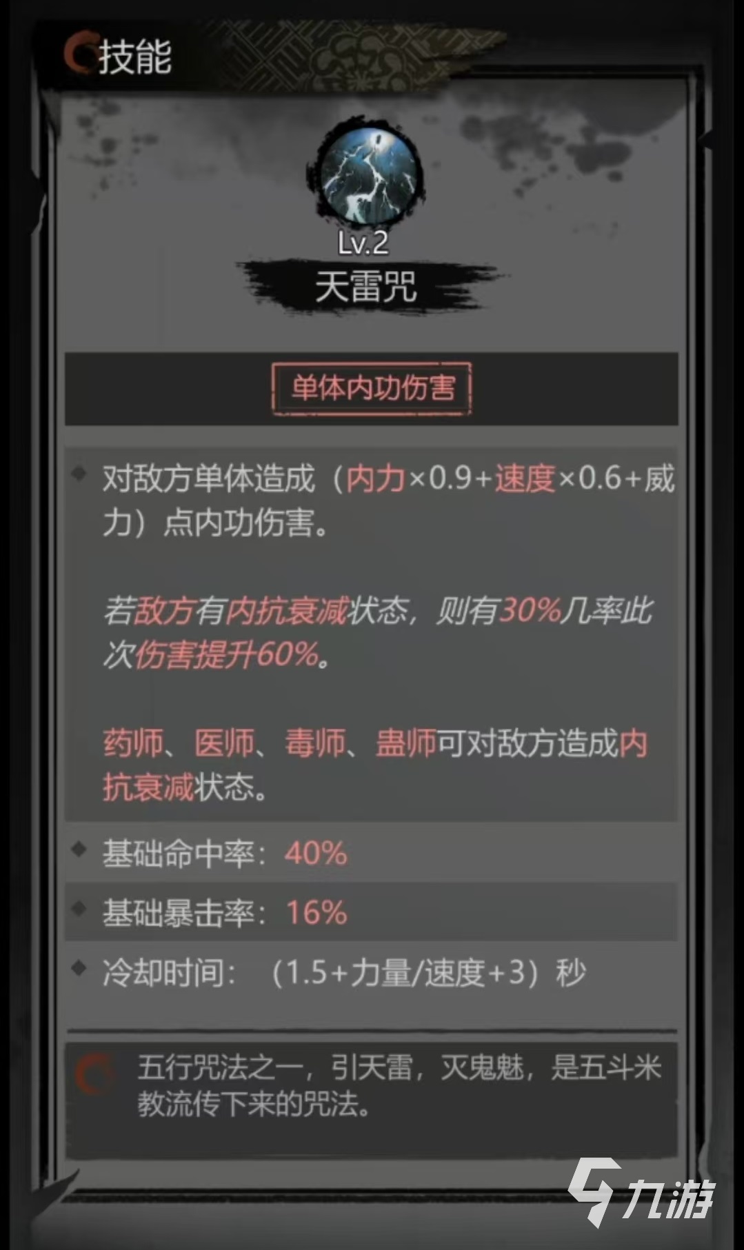 陰陽師是由方士轉(zhuǎn)職而成的職業(yè),所以也具有了方士的部分特點(diǎn),在輸出和輔助方面都比較出色。在戰(zhàn)斗中,無論是單體內(nèi)功輸出還是群體內(nèi)功輸出以及群體治療等方面,都有出色表現(xiàn)。自身的核心技能是天雷咒和爆炎符。天雷對雙單體造成內(nèi)功傷害,如果對方身上帶有內(nèi)抗衰減狀態(tài),則此技能輸出時(shí)有機(jī)率提高傷害。