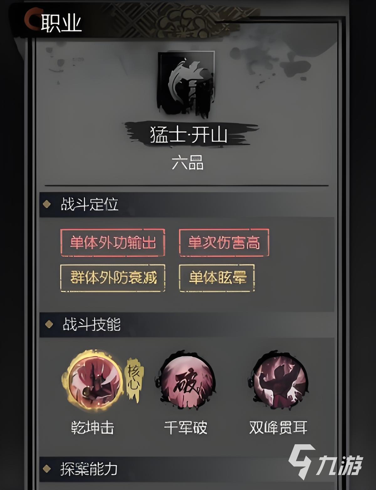 關(guān)于猛士的轉(zhuǎn)職上,如果說(shuō)玩家直接獲得了猛士職業(yè)后當(dāng)達(dá)到四品之后能再次轉(zhuǎn)職,不過(guò)這次的轉(zhuǎn)職上除了讓角色達(dá)到六品之外還能在技能上有所突破。猛士專精技能一【開山】,技能二【千軍】,技能三【破城】,可見(jiàn)技能的傷害屬性上有了很大的提升。