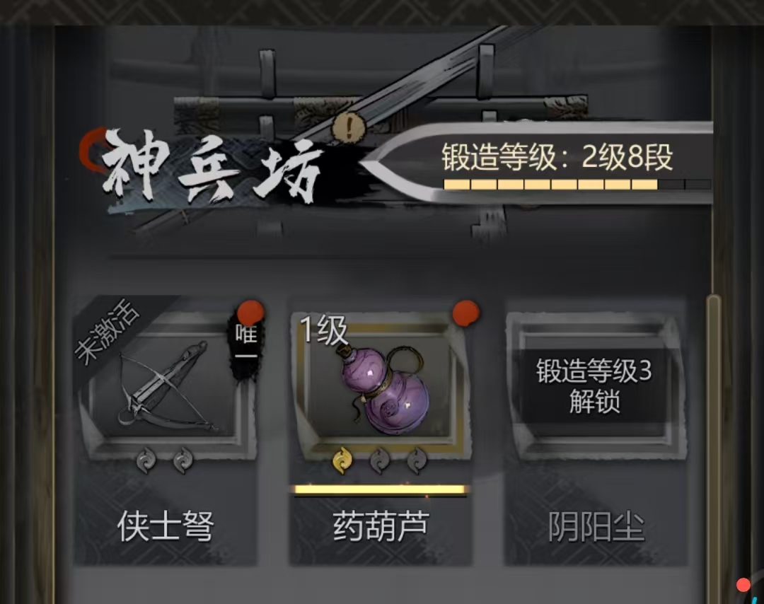 想要解鎖神兵坊的話,可能會(huì)需要玩家在進(jìn)入鬼市的時(shí)候選擇了對(duì)戰(zhàn)“鬼市看門人”且達(dá)成撤退效果,這個(gè)時(shí)候系統(tǒng)會(huì)提示玩家可以提升下隊(duì)伍的整體攻擊力,同時(shí)也可以試下解鎖神兵坊中的【藥葫蘆】,能增強(qiáng)玩家組建陣容的續(xù)航能力。