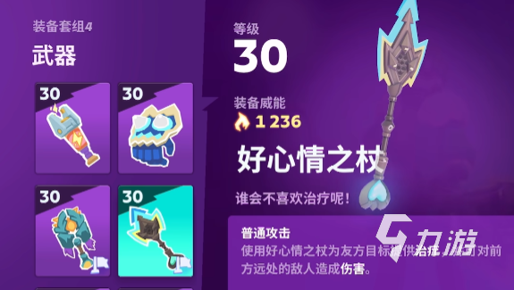 好心情之仗的普攻會給隊(duì)友提供治療,并且會對遠(yuǎn)處敵人造成傷害,連續(xù)攻擊10次攻擊范圍會變?yōu)?60°,并且能造成更高傷害提供更多治療,獲取方式為通過第一個組隊(duì)副本“窮途末路”。