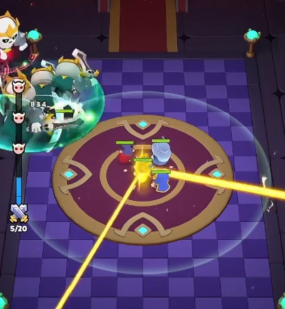 玩家們進入游戲后,首先就是解鎖更多的英雄,火箭是新手玩家都能獲得的英雄,在前期這個英雄非常好用,通過推關(guān)卡和商店還能獲得幾個英雄,這樣就能組成一個前期的陣營。在陣營的搭建上,主要是輸出+輔助的組合。