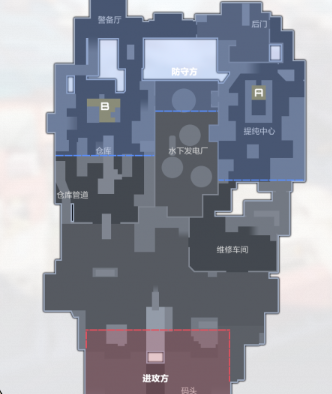 第三張圖看完后,就到第四張圖歐拉港口了,這張圖是一張港口類型的地圖,地圖分為外場和內(nèi)場兩部分,其中點(diǎn)位和防守方都在內(nèi)場,這就讓張圖成為了一張防守方擁有絕對優(yōu)勢的地圖,防守方可以在第一時(shí)間來到內(nèi)場的a點(diǎn)和b點(diǎn)兩個(gè)點(diǎn)位內(nèi),可以從這兩個(gè)點(diǎn)位往前來到前面的廠區(qū)、管道和車間位置進(jìn)行架點(diǎn)控圖,這個(gè)架點(diǎn)控圖的時(shí)間非常的充裕,等到架好點(diǎn)進(jìn)攻方的玩家也不一定能來到近點(diǎn)位置,因?yàn)檫M(jìn)攻方的出生點(diǎn)在最下方的碼頭位置,該位置到ab點(diǎn)的距離過于遠(yuǎn)了,且過程中還都是大平地,所以極其容易被架死在點(diǎn)外,因此這張圖也就成為了進(jìn)攻方玩起來最難受的圖。