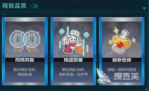 可以先從超玄體陣營(yíng)的卡牌說(shuō)起,如果是精致品質(zhì),里面就有一些很適合組隊(duì)的卡。同頻共振很實(shí)用,只要附近有隊(duì)友,那就可以有效提升射擊的速度,在抱團(tuán)沖點(diǎn)的時(shí)候火力就可以直接的拉滿。還有抱團(tuán)取暖,同樣是隊(duì)友在身邊,基本上每秒都可以回護(hù)甲,再也并不需要打著打著連護(hù)甲都沒(méi)有了,直接變成脆皮。對(duì)新手來(lái)說(shuō),靠這兩張卡直接就可以拿低保。在精致品質(zhì)里面還有一個(gè)萌新低保,每相隔一段時(shí)間就可以直接升一級(jí),前期的發(fā)育速度就可以直接起飛。