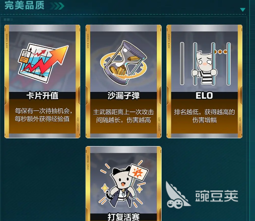 那接著自然就是完美品質(zhì)的超玄體卡,這些全部都是重量級(jí)??ㄆ稻捅容^適合那些準(zhǔn)備囤抽卡機(jī)會(huì)的玩家,每多一個(gè)代抽的機(jī)會(huì),那每一秒就可以拿更多的經(jīng)驗(yàn)。積攢的越多則意味著發(fā)育也就越快,到了后期等級(jí)就可以直接碾壓。沙漏子彈主打的就是一個(gè)蓄勢(shì)待發(fā)。主武器上次攻擊的間隔越久,那下一次所造成的傷害也就越高。在玩狙擊的時(shí)候,用這張卡就可以直接打出爆炸性的傷害。所以輕松就可以實(shí)現(xiàn)逆風(fēng)翻盤(pán),還有打復(fù)活賽,每隔一段時(shí)間,那下一次受傷之后就可以迅速的回血回護(hù)甲。