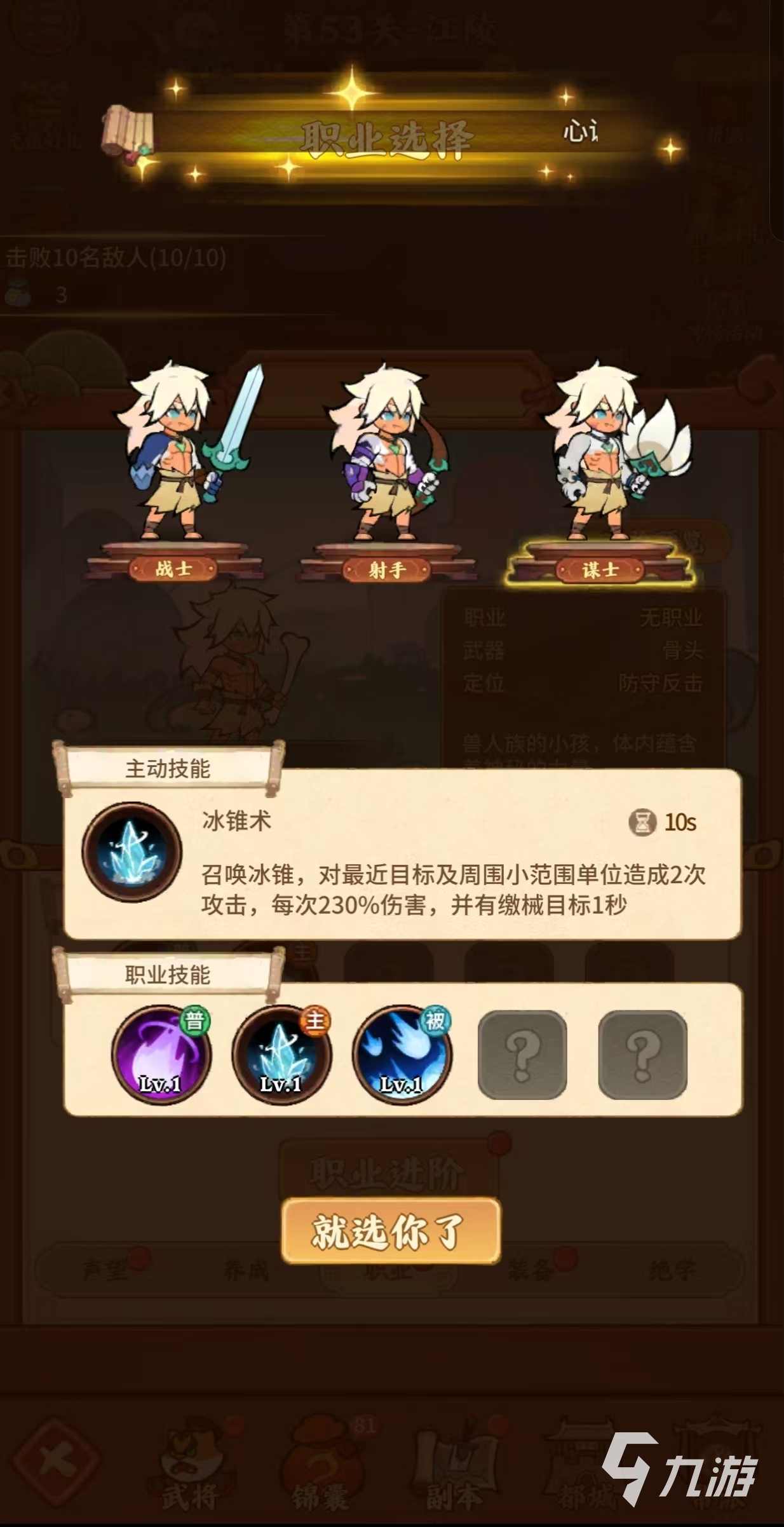 最后一個職業(yè)謀士,有著高法傷和高控制。普攻是單體中距離攻擊,對最近的目標造成120%的法術(shù)普攻傷害;主動技能是冰錐術(shù),召喚冰錐對最近的目標及周圍小范圍單位造成2次攻擊,還有著繳械目標的能力;謀士的被動技能和射手差不多,但是他的強化是對技能強化。也適合喜歡擅長策略和遠程操控的玩家。