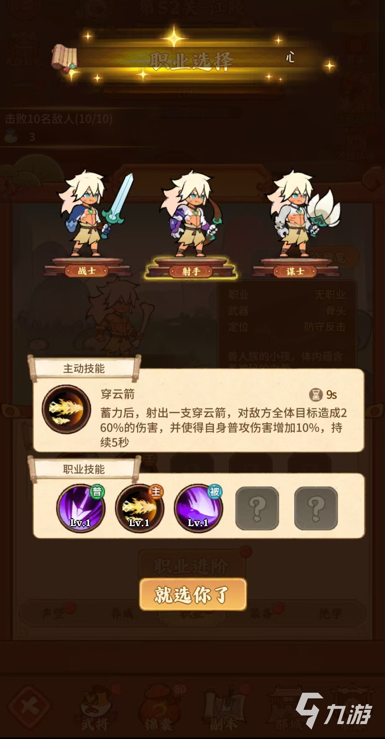 第二個射手職業(yè),他們擁有極快的攻擊速度和超高的暴擊率,射手的普攻技能是單體遠距離攻擊,對最遠的目標造成120%的普攻傷害;主動技能是蓄力后,射出一支穿云箭,造成巨大傷害;同時射手的被動技能是強化普攻,使普攻的傷害更高。所以喜歡策略和遠程操控的玩家,可以試一試射手這個職業(yè)。