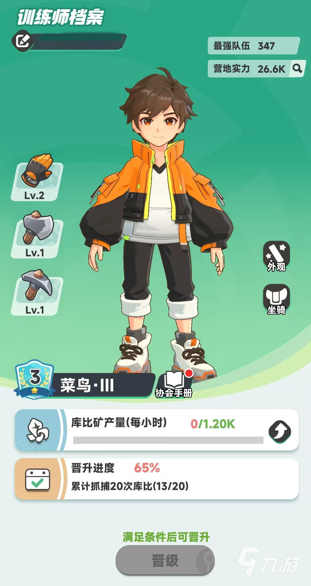 大家在主頁(yè)中點(diǎn)擊左上角的訓(xùn)練師頭像,就可以看到當(dāng)前訓(xùn)練師的等級(jí)以及晉升進(jìn)度,只要晉升進(jìn)度達(dá)到100%,就可以進(jìn)行晉級(jí)。晉級(jí)之后能夠解鎖新頭銜以及帶來(lái)更高的提升效果。為了能夠快速滿足晉級(jí)的需要,大家需要時(shí)刻觀察當(dāng)前等級(jí)所需要的條件,例如要達(dá)到一定量的庫(kù)比礦產(chǎn)量,還需要捕捉指定數(shù)量的寵物,或者是其他要求,都會(huì)在下面非常清楚的羅列出來(lái),只需要按照這些提示去做就可以了。