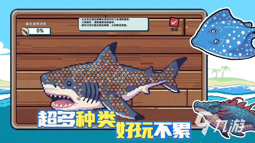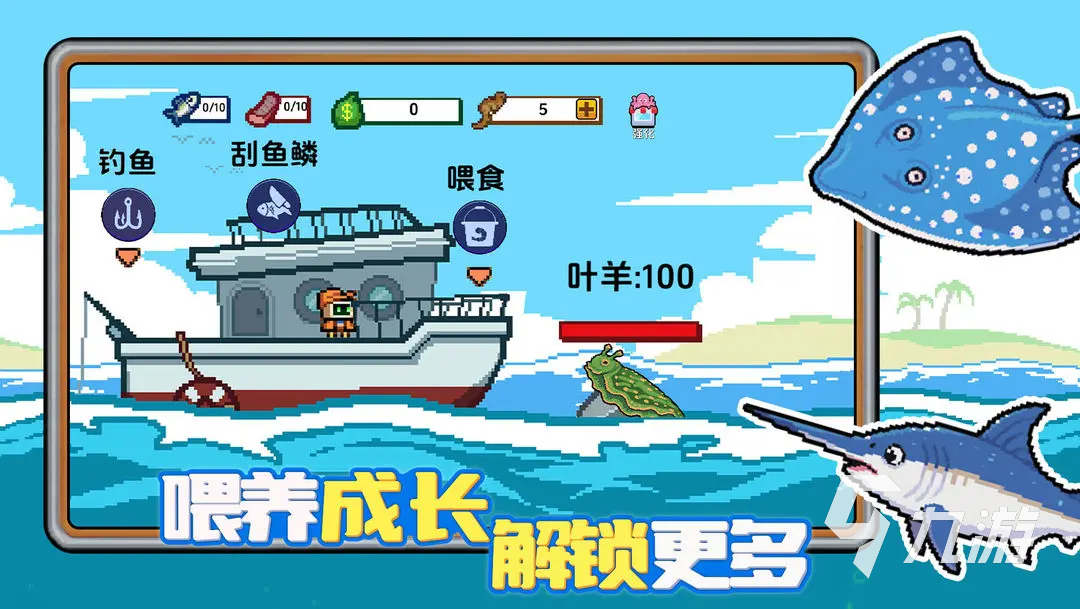 玩法是以垂釣為主的,大家需要不斷的進(jìn)行升級(jí),解鎖更多的區(qū)域,每個(gè)區(qū)域里可以釣到的魚(yú)都有所不同,如果想要釣大魚(yú)就要前往深海,相應(yīng)的對(duì)大家的要求也會(huì)高很多。此外,要注意的是,在釣魚(yú)的過(guò)程中,大家也有可能會(huì)遇到一些特別的魚(yú),有的海洋生物身上會(huì)寄生藤壺,所以大家需要幫忙清理。