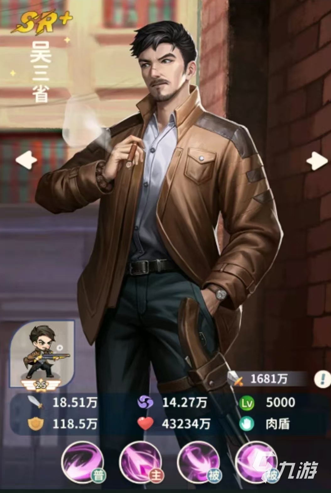 在游戲的背景故事中,吳三省是吳家在江湖上行走的唯一角色,從小開始盜墓,積累了豐富的經(jīng)驗,擅長解謎和機關破解。在游戲中的品質(zhì)被定為了SR+,這樣的品質(zhì)雖然達不到最高層次,但是也有容易培養(yǎng)的特點,而且自身的技能和能力很值得研究。吳三省是摸金流派的前排肉盾角色,擁有較強的控制能力。