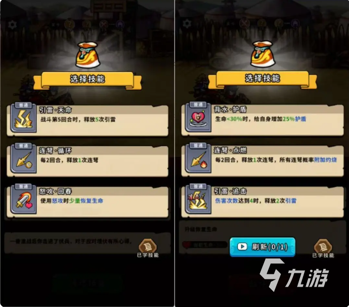 面對(duì)常規(guī)選項(xiàng)時(shí),三個(gè)技能如果都和概率有關(guān),可以刷新技能,也可選含有概率的,不過(guò)最好不要選3次行動(dòng)后消失的技能,即便概率高,但是在初期使用還是比較浪費(fèi)。如果是支線,也可繼續(xù)選擇加攻擊力的。對(duì)于方士和仙人,方士進(jìn)行交易時(shí),簽訂對(duì)自己有利的條約,仙人的恩賜里選擇能附加傷害的,比如連弩附毒。