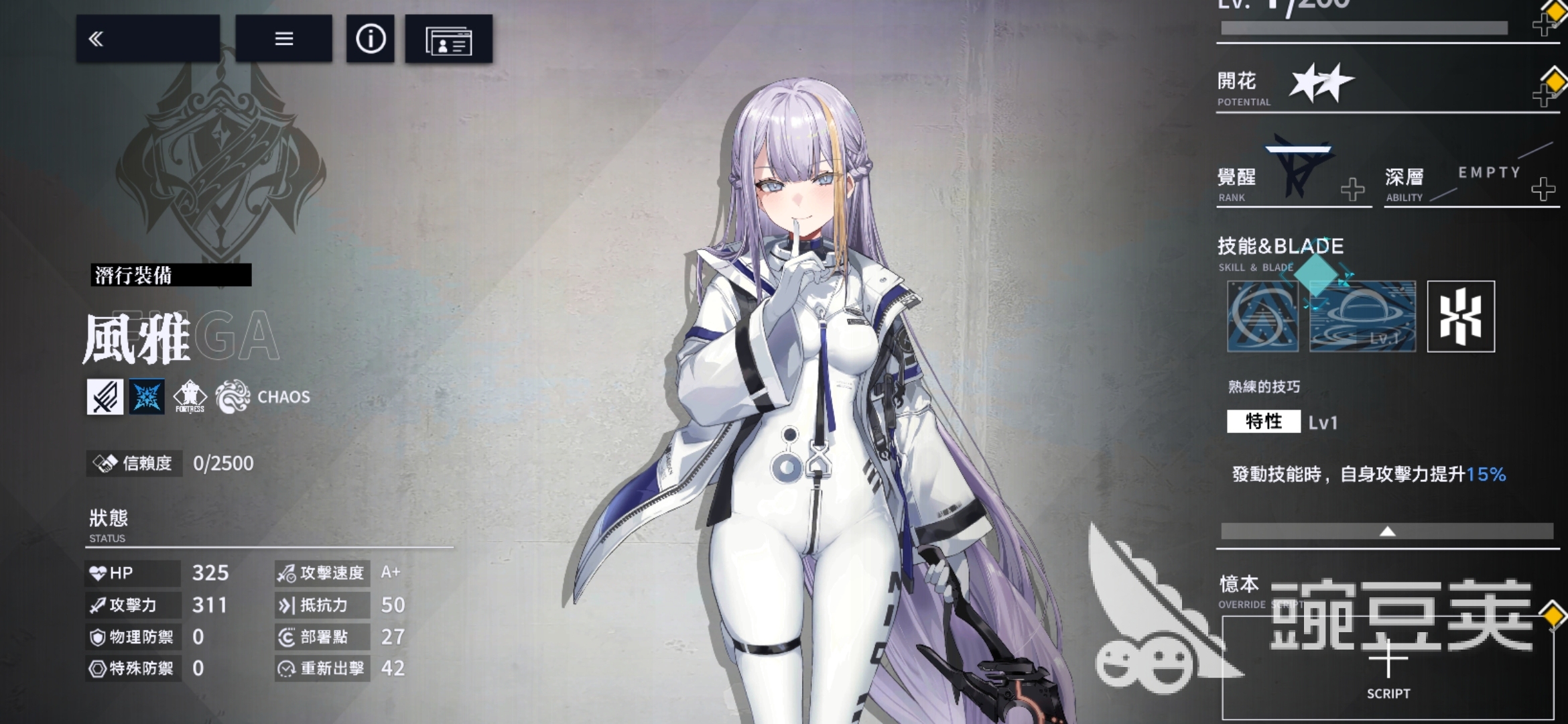 風(fēng)雅的定位是反擊型前鋒。她的技能能在反擊狀態(tài)下減少所受傷害,并在被攻擊時(shí)立即打出多段物理反擊,極大提高輸出效率。BLADE技能則能在大范圍內(nèi)釋放連續(xù)攻擊,兼顧進(jìn)攻與防守。風(fēng)雅的優(yōu)勢在于攻守一體,她既能在前排承擔(dān)傷害,又能依靠反擊不斷消耗敵人。