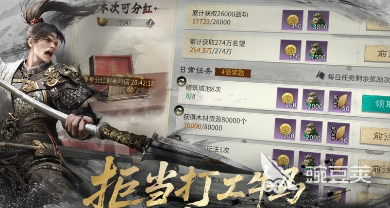 接下來就是任務(wù)系統(tǒng),這也是玩家獲取金幣的一個重要途徑。從一開始的開荒到后面的發(fā)展,任務(wù)系統(tǒng)給了玩家指引。主線任務(wù)以及主公的成長進度完成之后,就會開啟新的章節(jié),并且攻克一些重要的城池,從而獲取金幣。對新手來說很快就可以建立起自己的經(jīng)濟系統(tǒng)。還有就是日常任務(wù)和循環(huán)任務(wù),這也是一筆不小的金幣來源。通過完成武將的培養(yǎng)、資源的收集等基礎(chǔ)操作,玩家能夠穩(wěn)定的獲得金幣,這些基本的操作往往比較容易,所以玩家每天上線之后都能夠高效的完成。