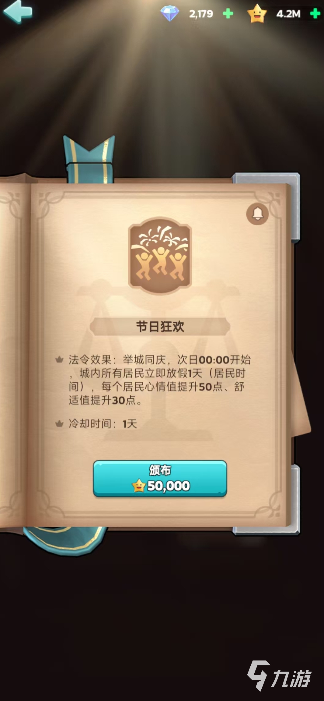 接下來要關(guān)注的是居民的幸福值,這是影響滿意值的另一個(gè)核心因素。如果城市長(zhǎng)期高負(fù)荷運(yùn)轉(zhuǎn),居民被安排連續(xù)工作多日但得不到休息,他們的幸福值會(huì)逐步下降,一旦過低,滿意值也會(huì)隨之減少。解決這類問題的方式有多種:可以通過頒布“節(jié)日狂歡”法令讓全體居民休息一天,短期內(nèi)迅速提升幸福感。除了“節(jié)日狂歡”,還有一些法令可以臨時(shí)增強(qiáng)居民的健康值,比如藥到病除,可以立即治愈所有的居民。