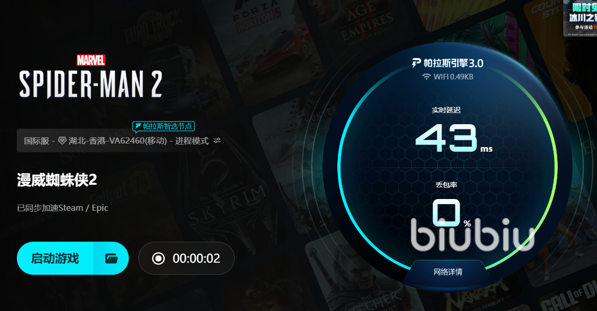 值得一提的是,biubiu并不是單純依靠福利來吸引玩家,它在專業(yè)性上同樣有著顯著優(yōu)勢。它與冠軍選手Aixleft展開合作,將競技級別的優(yōu)化理念引入到產品中,同時引入了帕拉斯引擎3.0,進一步提升了數(shù)據傳輸?shù)男屎头€(wěn)定性。這讓游戲在大規(guī)模場景渲染或高速動作對戰(zhàn)時能夠保持穩(wěn)定的幀數(shù)表現(xiàn),避免因網絡波動而帶來的閃退。對于一款如漫威蜘蛛俠2這樣動作感極強的游戲來說,網絡和畫面的同步性非常重要,biubiu通過技術的加持,為玩家提供了接近賽事級的優(yōu)化體驗,也讓更多人能夠專注于游戲內容本身,而不被掉線或報錯干擾。