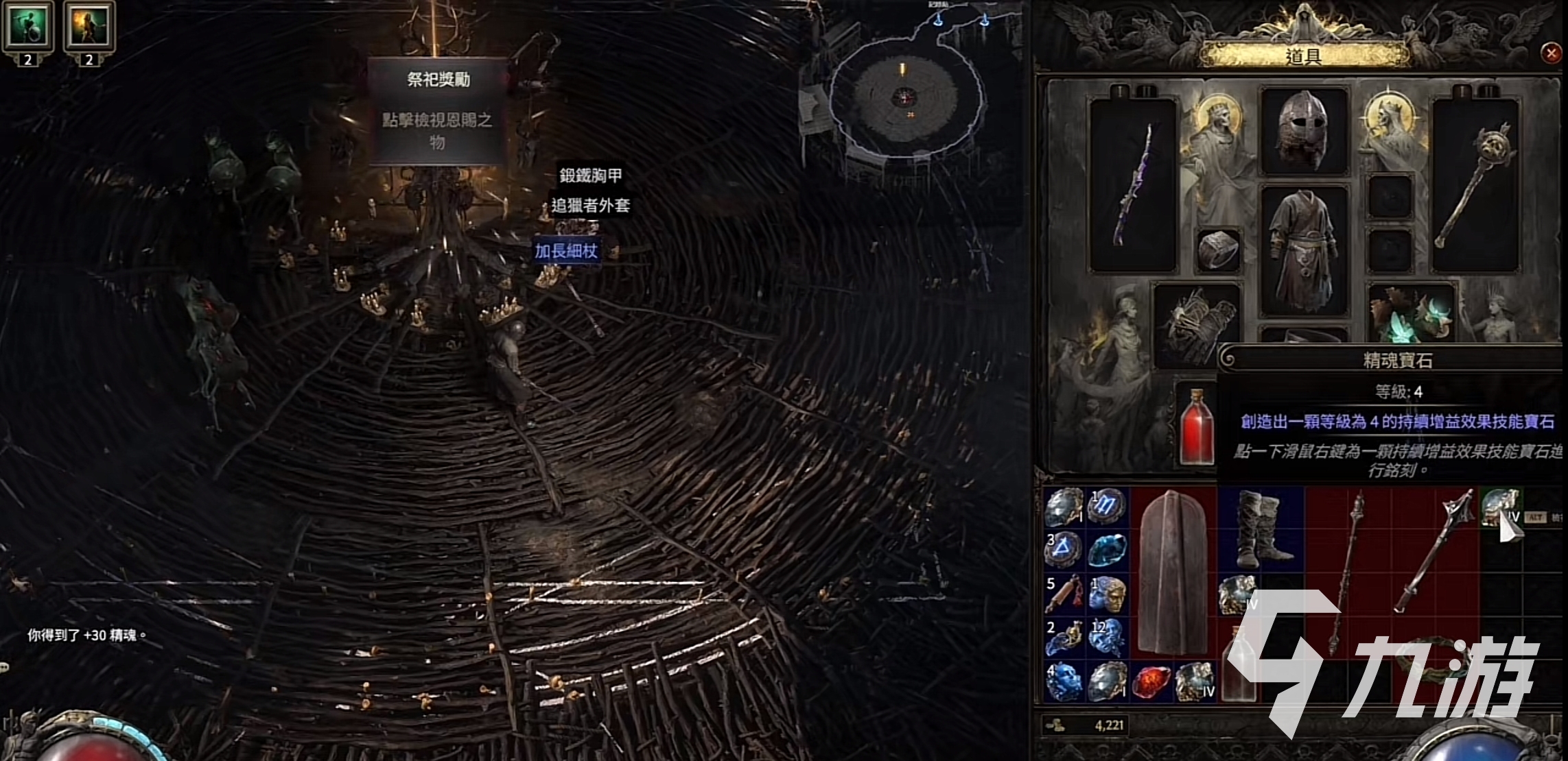 在第一張地圖的時(shí)候會(huì)接取一個(gè)任務(wù)名稱叫做不詳祭壇,需要在獵場(chǎng)這個(gè)地圖完成祭壇的祭祀和激活,然后跟隨著任務(wù)的指引進(jìn)入弗雷索恩地圖,進(jìn)入之后激活里面的所有祭壇,一直打到最后,會(huì)遇到一個(gè)名字叫迷霧之王的boss,將其擊敗之后就能夠獲得寶石花顱骨的道具,在背包里面點(diǎn)擊使用就可以增加30個(gè)精魄,并且獲得一個(gè)四級(jí)的精魄寶石,點(diǎn)擊寶石在左邊頁(yè)簽中選擇女術(shù)者的第一個(gè)技能,去銘刻一下即可。