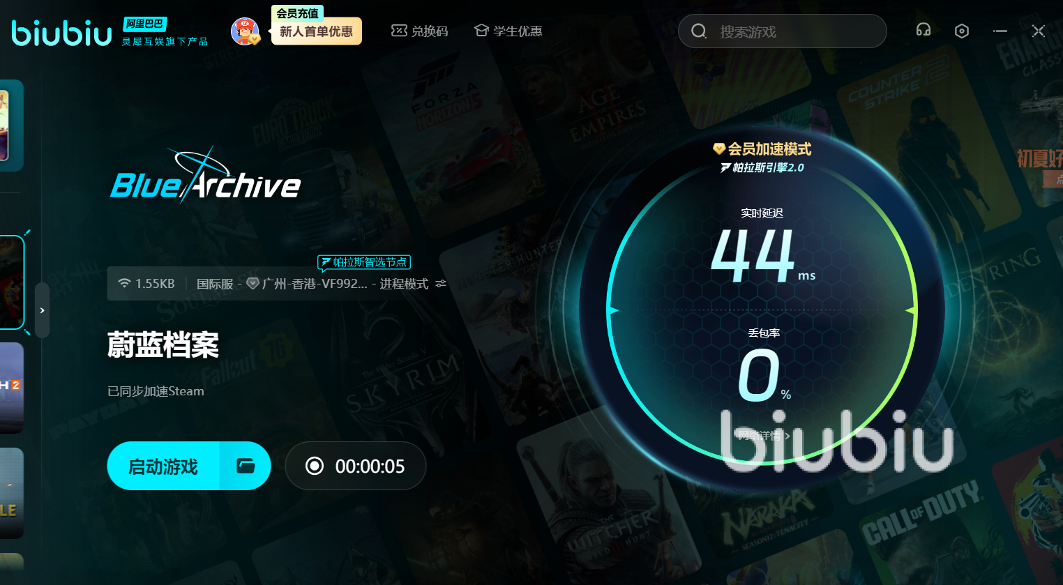以上就是對蔚藍(lán)檔案steam版卡頓應(yīng)對方法的介紹了,告別卡頓,絲滑連招,優(yōu)化設(shè)備性能、借助biubiu的強勁網(wǎng)絡(luò)加速,配合超長的96小時免費加速福利,就能在蔚藍(lán)檔案的精彩世界中暢行無阻,體驗最純粹的戰(zhàn)術(shù)指揮與青春物語,現(xiàn)在就行動,讓每一次戰(zhàn)斗指令都精準(zhǔn)如飛。