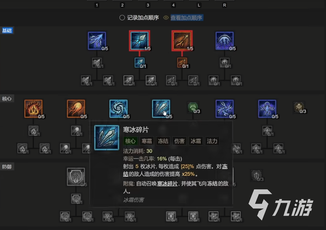 冰法目前最熱門的BD是寒冰碎片手動版,這套BD既有相當(dāng)?shù)膫?,并且還不會太吃操作和裝備。首先,我們基礎(chǔ)技能需要點一點火焰彈和一點冰霜彈。點火焰彈的理由是為了附魔,它可以讓其他傷害類型的技能都可以附加燃燒的狀態(tài)。點冰霜只是為了可以點接下來的技能樹。接下來的核心技能點滿寒冰碎片,之后在把強化寒冰碎片點掉。點完后記得把寒冰碎片放入附魔欄。