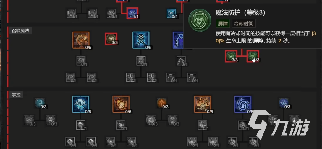 接下來的召喚魔法,我們需要點的只有精準(zhǔn)魔法和元素協(xié)調(diào)這兩個被動。協(xié)調(diào)下面的法力護(hù)盾和魔法防護(hù)都點滿。掌控這一欄里我們先把極速凍結(jié)點上提升凍結(jié)概率。畢竟冰霜新星也是有CD的,我們也需要在CD期有其他的凍結(jié)方法。之后的絕招直接點深度凍結(jié)和技能下的至尊凍結(jié)都點上。如果還有多的技能我們就點寒霜之災(zāi),永凍之霜和凌冽寒風(fēng)。還有多的可以再點烈焰洶涌增加法力恢復(fù)。最后的關(guān)鍵這一欄,需要點雪崩??梢宰屜乱淮魏槠膫υ黾?0%。同時還不消耗法力值。