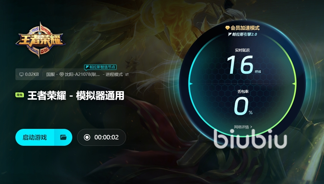 biubiu的整體操作也比較簡(jiǎn)單,即便是從未使用過加速軟件的新用戶,也可以直接上手,首頁搜索王者榮耀游戲名稱就能找到對(duì)應(yīng)的游戲內(nèi)容,然后一鍵開啟加速就可以了,它會(huì)為我們構(gòu)建專屬加速通道,讓玩家們可以精準(zhǔn)無誤的連接到指定服務(wù)器,另外,biubiu還可以為我們實(shí)時(shí)追蹤當(dāng)前的網(wǎng)絡(luò)波動(dòng)狀態(tài),進(jìn)入加速詳情界面,可以看到詳細(xì)的延遲、丟包率。如果覺得延遲過高,我們可以手動(dòng)更換節(jié)點(diǎn),海量節(jié)點(diǎn)自由選擇,讓大家都能保證一個(gè)最低延遲的網(wǎng)絡(luò)體驗(yàn)環(huán)境。