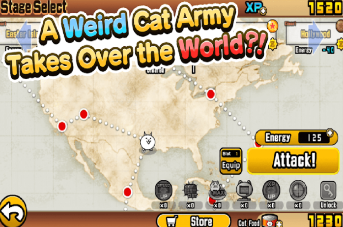 游戲內(nèi)會(huì)有很多很多的關(guān)卡,玩家將組建一個(gè)自己的貓咪隊(duì)伍,不斷的去占領(lǐng)這片土地,游戲玩法主要以塔防為主,可以不斷的賺取金幣來(lái)雇傭貓咪,也可以去購(gòu)買一些裝備武器,提升實(shí)力。