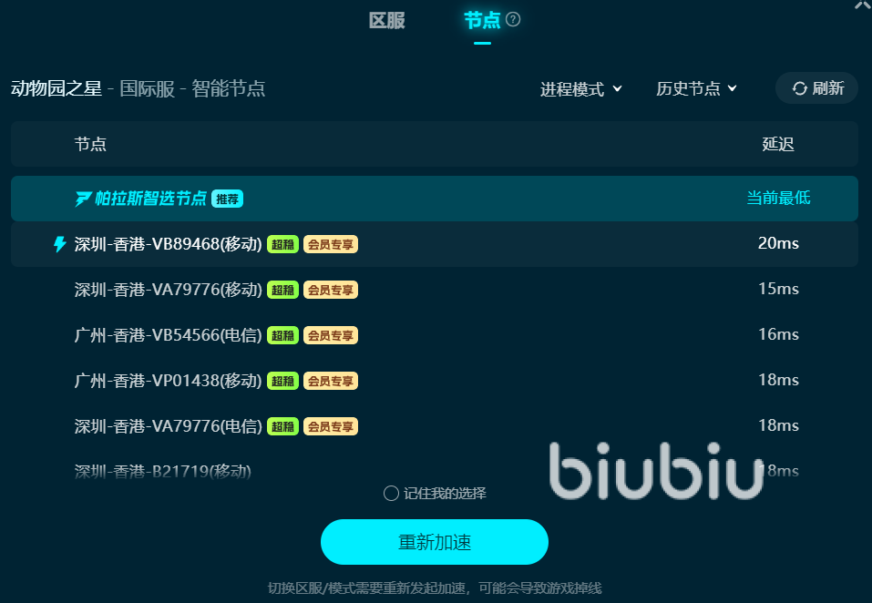 不僅如此,biubiu的界面設(shè)計(jì)十分貼心,它會(huì)清晰地展示加速時(shí)長(zhǎng),以及當(dāng)前網(wǎng)絡(luò)的各項(xiàng)關(guān)鍵指標(biāo),讓你對(duì)自己的網(wǎng)絡(luò)狀態(tài)一目了然,做到心中有數(shù)。你會(huì)驚喜地發(fā)現(xiàn)游戲的實(shí)時(shí)延遲大幅降低,以往操作遲滯感消失不見,建造模式動(dòng)作反饋也更加及時(shí)。丟包率也被穩(wěn)穩(wěn)控制在0左右,網(wǎng)絡(luò)傳輸穩(wěn)定可靠,再也不用擔(dān)心關(guān)鍵時(shí)刻因?yàn)榫W(wǎng)絡(luò)波動(dòng)而導(dǎo)致的操作失誤。