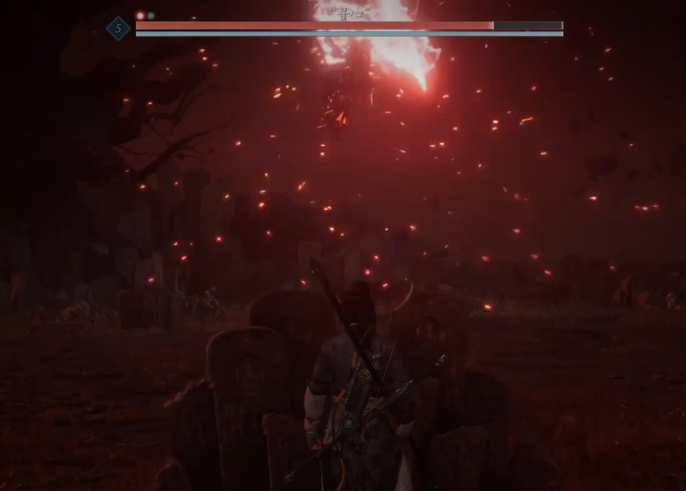 接著他會(huì)從天召喚一大堆雷霆并降落,這時(shí)候需要躲避在墓碑后面。才可以避免被秒殺,之后再?zèng)_上前跟她繼續(xù)對(duì)打。然后將它的血量消耗完完之后,他會(huì)朝著天空釋放技能。這時(shí)候靜靜等他落下來(lái)之后再補(bǔ)傷害,就可以將其消滅。
