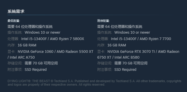 消逝的光芒困獸配置要求詳解 消逝的光芒困獸最低和推薦配置一覽