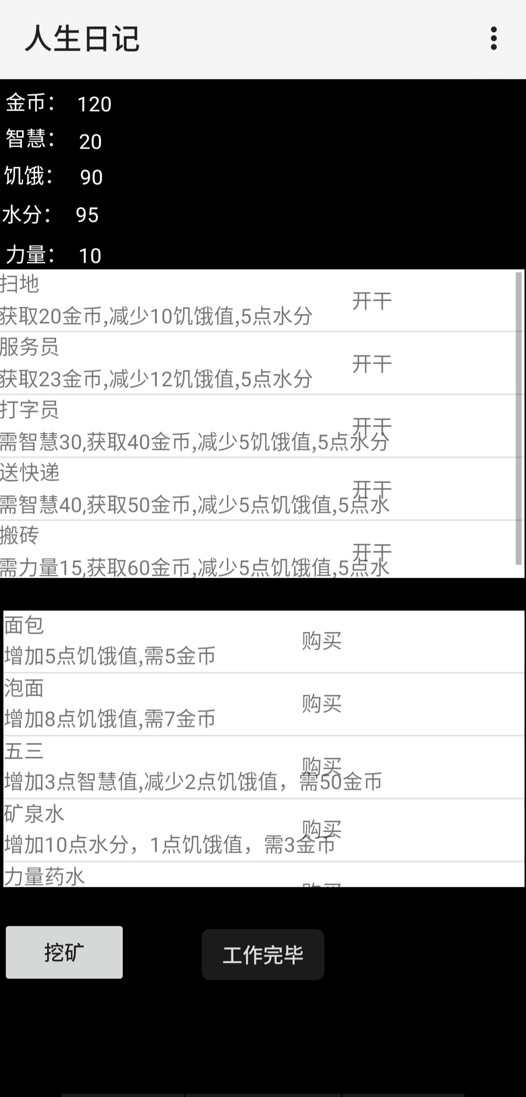 這款游戲就如同它的名字一樣,真?zhèn)€游戲以簡約的日記文字作為游戲核心,在游戲中通過創(chuàng)業(yè)作為發(fā)展路線來不斷填充你的日記。整個游戲非常的簡約而且操作也非常的簡單!