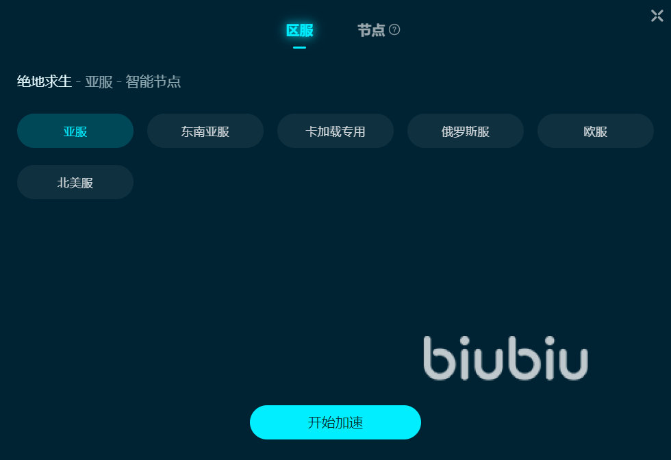 只需在biubiu首頁搜索“PUBG”,選擇對應(yīng)的國際服、國服、測試服等,點(diǎn)擊“立即加速”就能輕松啟動加速服務(wù)。智能匹配最優(yōu)節(jié)點(diǎn),幫助你實(shí)現(xiàn)低延遲的穩(wěn)定連接,每一次大圖跑毒都能迅速駕車反應(yīng),享受無卡頓的暢快游戲體驗(yàn)。大區(qū)的選擇上豐富,還有針對卡加載專用,相信能滿足大家多樣化的加速需求。