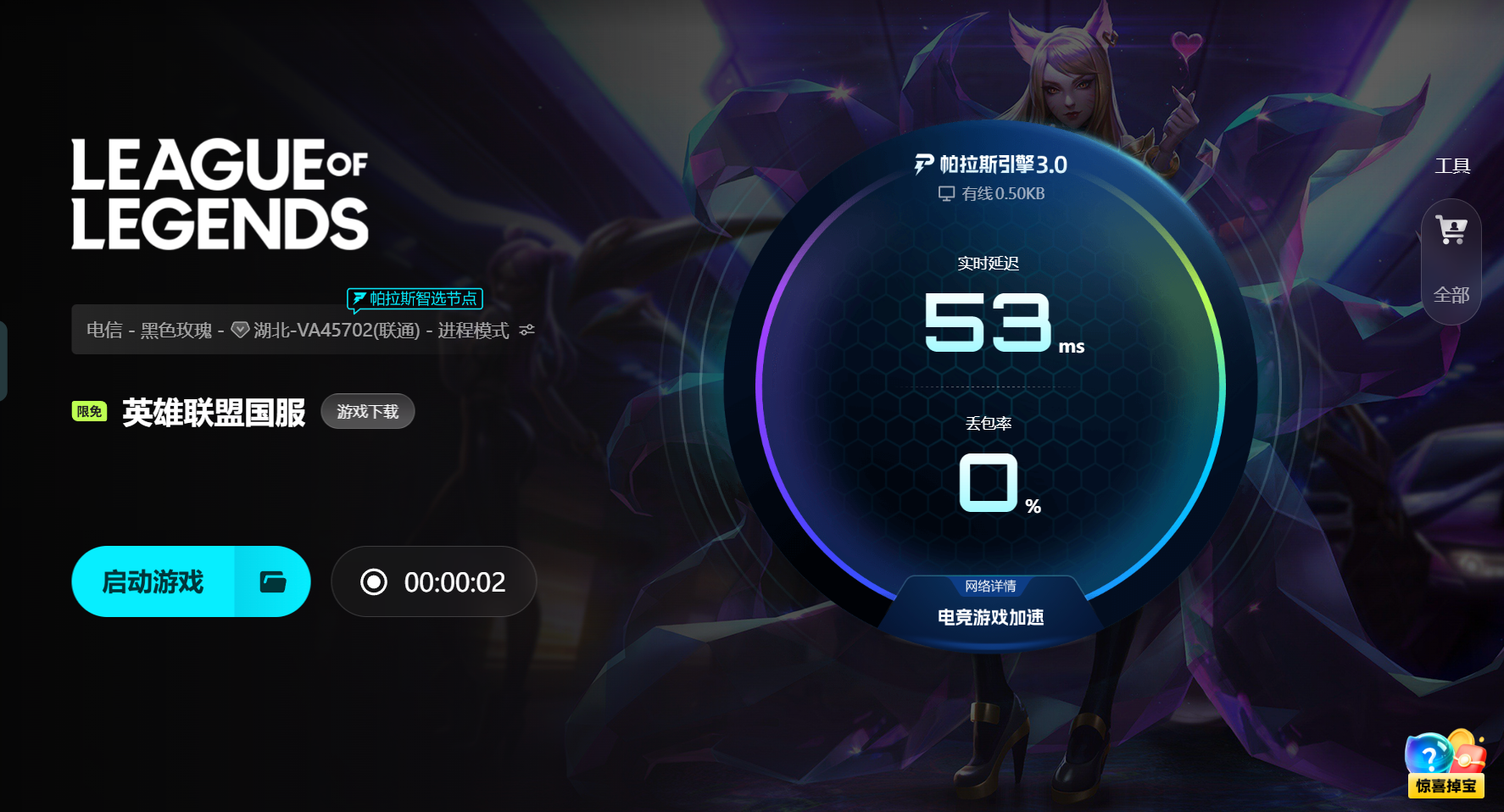 在操作體驗(yàn)上,biubiu加速器始終是簡(jiǎn)潔大方直觀的格局。進(jìn)入客戶端,搜索“英雄聯(lián)盟”,選定加速模式并點(diǎn)擊啟動(dòng),系統(tǒng)將一鍵完成所有優(yōu)化,無需繁瑣操作。后臺(tái)占用率低,不會(huì)妨礙電腦的流暢度,并兼容多款游戲平臺(tái),加速功能也覆蓋LOL之外的其他游戲。也能支持FPS、MMO等熱門游戲,實(shí)現(xiàn)一款工具多用。