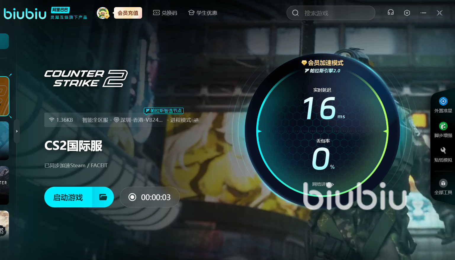 Biubiu加速器可不是簡單的工具,它擁有帕拉斯引擎2.0技術(shù),能夠針對各種網(wǎng)絡(luò)問題進(jìn)行一鍵優(yōu)化。你只需要在首頁的搜索框中輸入“CS2”,點(diǎn)擊“立即加速”,系統(tǒng)就會自動為你匹配最佳加速節(jié)點(diǎn),確保你的網(wǎng)絡(luò)連接無比穩(wěn)定。