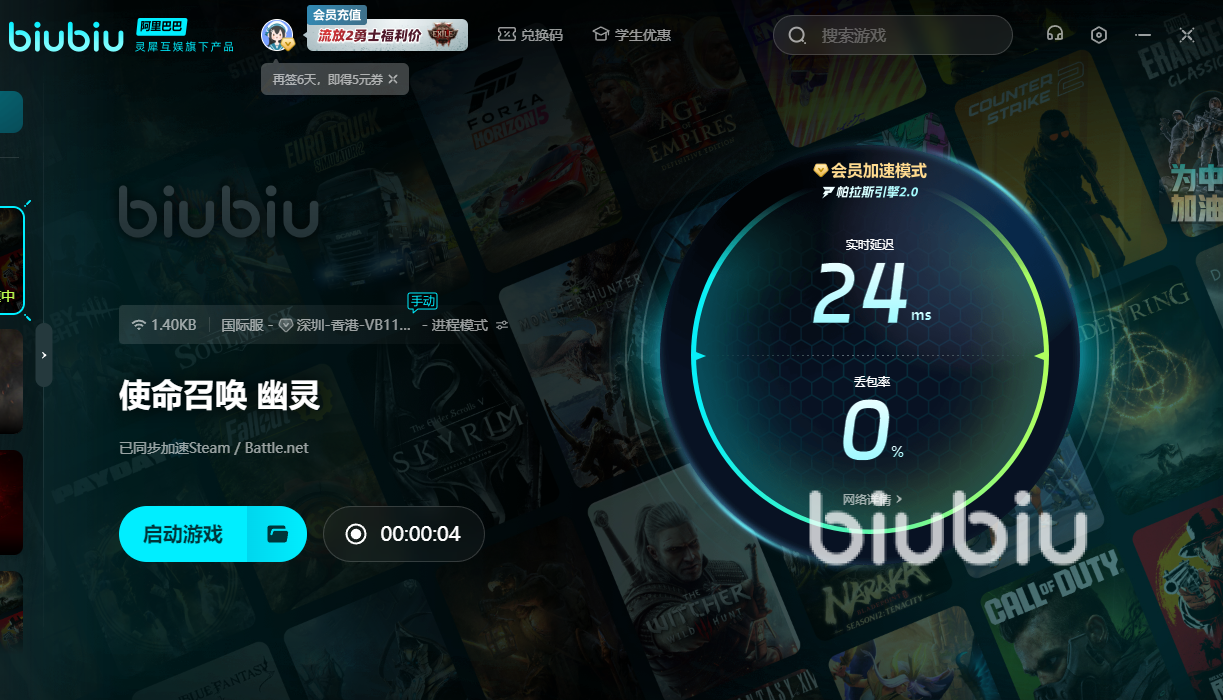 使命召喚幽靈目前仍然是一款優(yōu)秀的海外大作,所以仍舊暫時(shí)沒(méi)上線國(guó)服。所以要用上biubiu,方能優(yōu)化網(wǎng)絡(luò),才能真正化身成為一個(gè)潛行在各處的幽靈。新人的話可領(lǐng)取三個(gè)小時(shí)的免費(fèi)加速,此外新老用戶輸入【biubiu不卡頓】,又能額外獲得三天免費(fèi)加速。若是在戰(zhàn)場(chǎng)中用槍擊殺對(duì)方時(shí)太卡,可能被對(duì)方一個(gè)刺刀就消滅了。用上加速器后,還能讓你順利的解決所有敵人,并完成高效率的補(bǔ)刀。