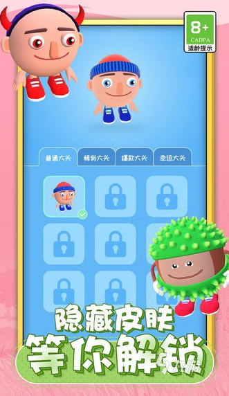 這款游戲玩法簡單輕輕一觸屏幕大頭角色就歡快地唱起歌來,歌聲越嘹亮它跳得就越遠,障礙不過是它歌聲中的小插曲輕松就能跨越直奔勝利的終點。它那別出心裁的關卡設計,當大家控制的大頭被拉長時,它不僅變得滑稽可愛還會唱出響亮的歌聲。而在前進的路上記得要眼疾手快,避開那些想擋大家道的障礙物讓歌聲和跳躍的節(jié)奏不停歇。