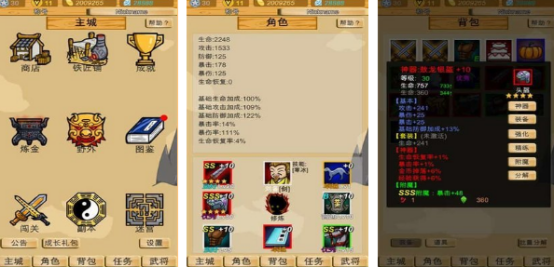 玩法較為經(jīng)典,將神話神獸與三國相結(jié)合,融合了策略,養(yǎng)成角色扮演等所有神獸都能自由馴養(yǎng)并捕捉,比如青龍白虎,捕捉之后陪伴在你的身旁對(duì)戰(zhàn)斗助力,當(dāng)馴養(yǎng)之后全面提升戰(zhàn)力,并且所相應(yīng)的特殊技能。在具體的歷史劇情上,高度還原三國歷史事件同時(shí)又經(jīng)過了奇幻元素,通過主線與副本體驗(yàn)史詩級(jí)戰(zhàn)役。