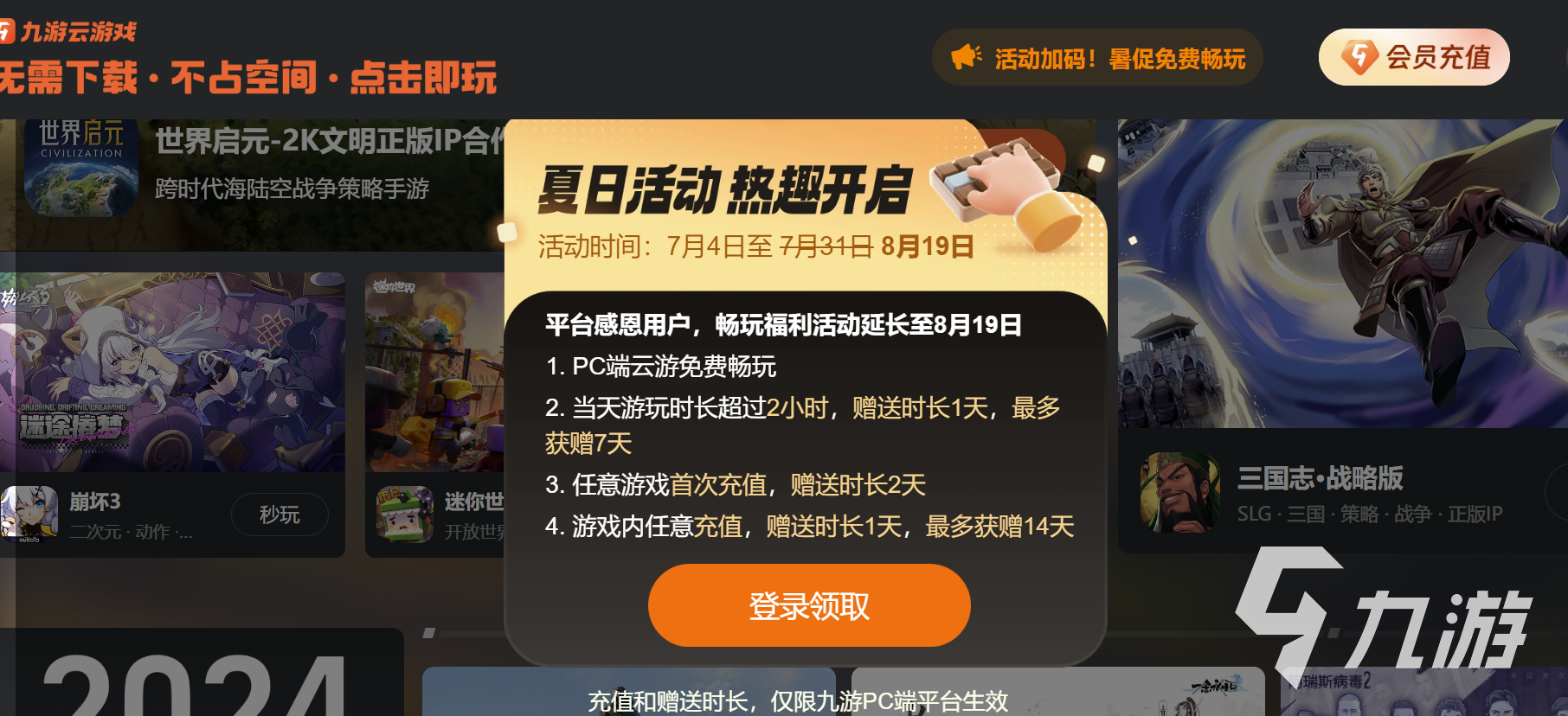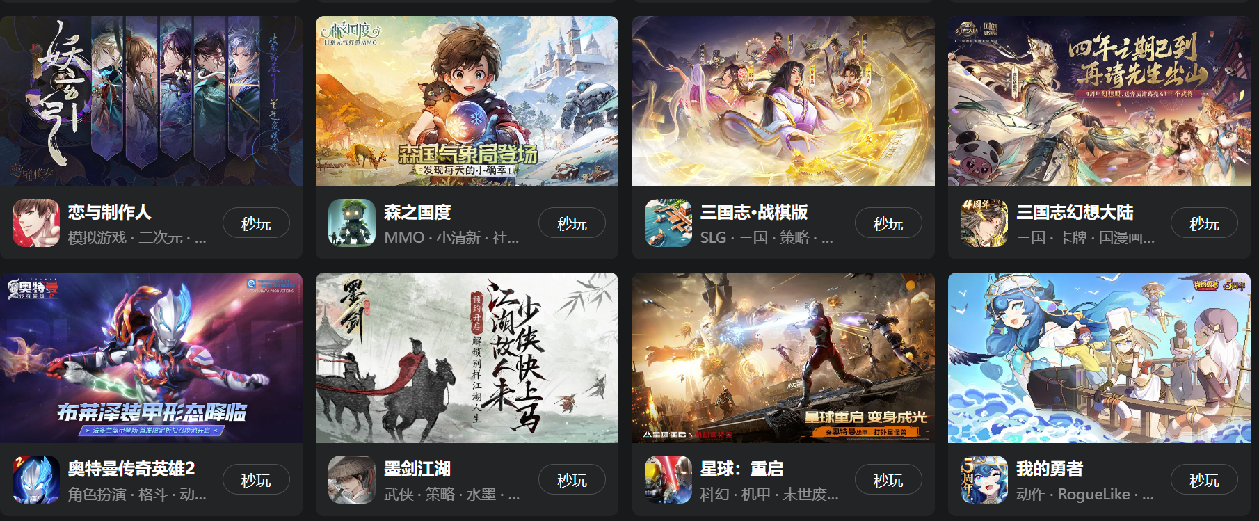 登錄之后是可以得到平臺給與的7天會員身份,所運行的游戲都是享有高清立繪畫質(zhì)。平臺上邊的游戲數(shù)量和類型有很多種,在這七天的時間當(dāng)中你想要玩哪一款都不會有限制,快速的加入不需要排隊等待,因為大家節(jié)省了不少的時間,當(dāng)然卡頓以及廣告插入的情況全然不會出現(xiàn),給你沉浸式的游戲體驗。