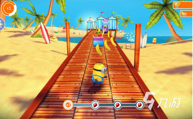 游戲的多變性很強,玩家扮演小黃人,需要避開所有的障礙物和機關(guān)到達終點,還要在奔跑的過程中收集各種各樣的水果以獲得更多的金幣,游戲中會出現(xiàn)五花八門的BOSS,在BOSS戰(zhàn)中,玩家還需要在跑酷的同時躲避BOSS的攻擊并做出反擊。