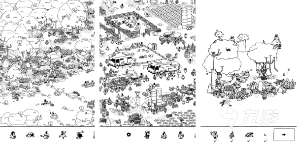 在這個黑白世界以手繪風(fēng)格為主的游戲作品當(dāng)中,玩家主要的目標(biāo)就是尋找到各種隱藏在角落里的小家伙們,游戲當(dāng)中涉及到的尋找目標(biāo)多達190個,并且為了增強游戲的趣味度和游戲的整體推進情況,他還加入了各種音效模擬,可以讓玩家在尋找物品的同時體驗到游戲世界中所營造的各種氛圍,不過因為游戲中很多畫面都是以手繪風(fēng)格為主的,所以畫面還是較為復(fù)雜的,想要尋找到隱藏的小物品并不是那么簡單的事。