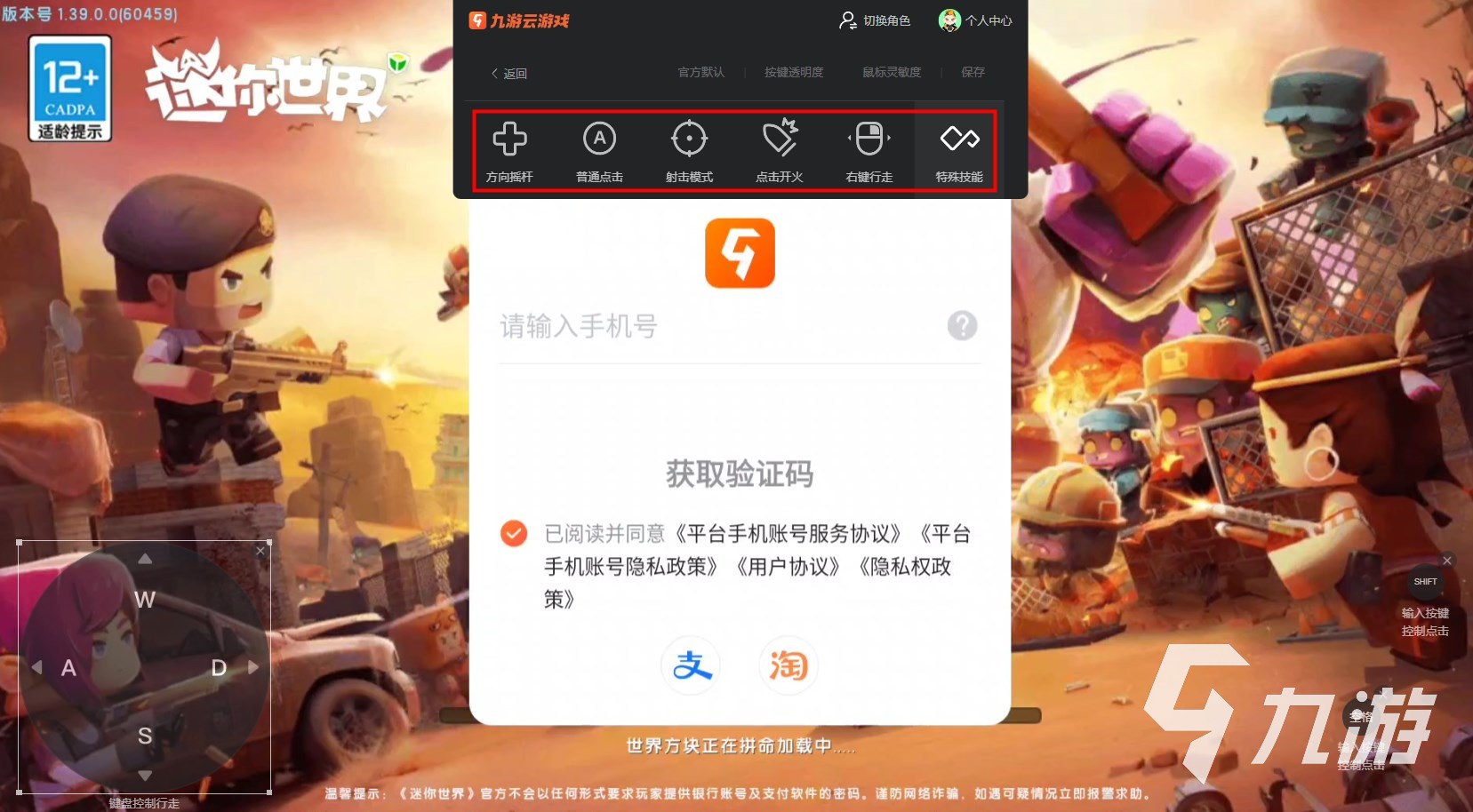 九游云游戲有針對不同游戲的默認(rèn)鍵位,例如迷你世界這款游戲中很多玩家會體驗它的射擊玩法,因此搖桿、建設(shè)設(shè)置非常重要,九游云游戲不僅有默認(rèn)的鍵位并且支持玩家添加自己的方案。