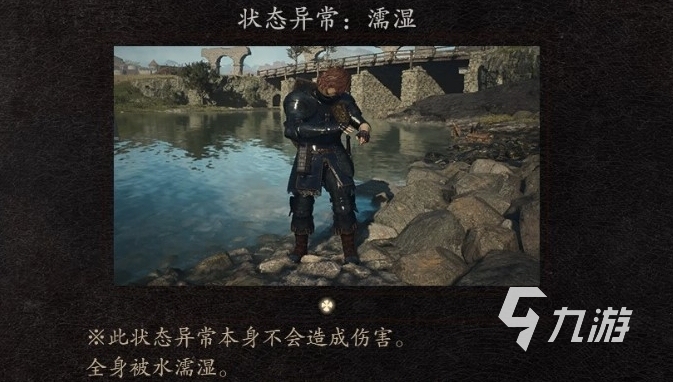在雨天或身體進(jìn)入水中變濕的時(shí)候,玩家擇能夠受到更少的火屬性傷害,而冰屬性的攻擊可能會導(dǎo)致再次凍結(jié),雷屬性攻擊可能會引起觸電的效果。