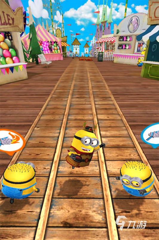《神偷奶爸:小黃人快跑》設(shè)計了眾多玩世不恭的跑酷玩法,在以原動漫為題材的基礎(chǔ)上,開發(fā)團隊全新打造了出類拔萃的動畫以及配音,游戲里玩家要以小黃人的身份,來展開一段心弦緊繃的跑酷之旅,此外游戲還一反常態(tài)的把動漫中的一些反派進行了加入,我們要在各種熒光閃爍的跑道中,與這些反派開啟智斗。