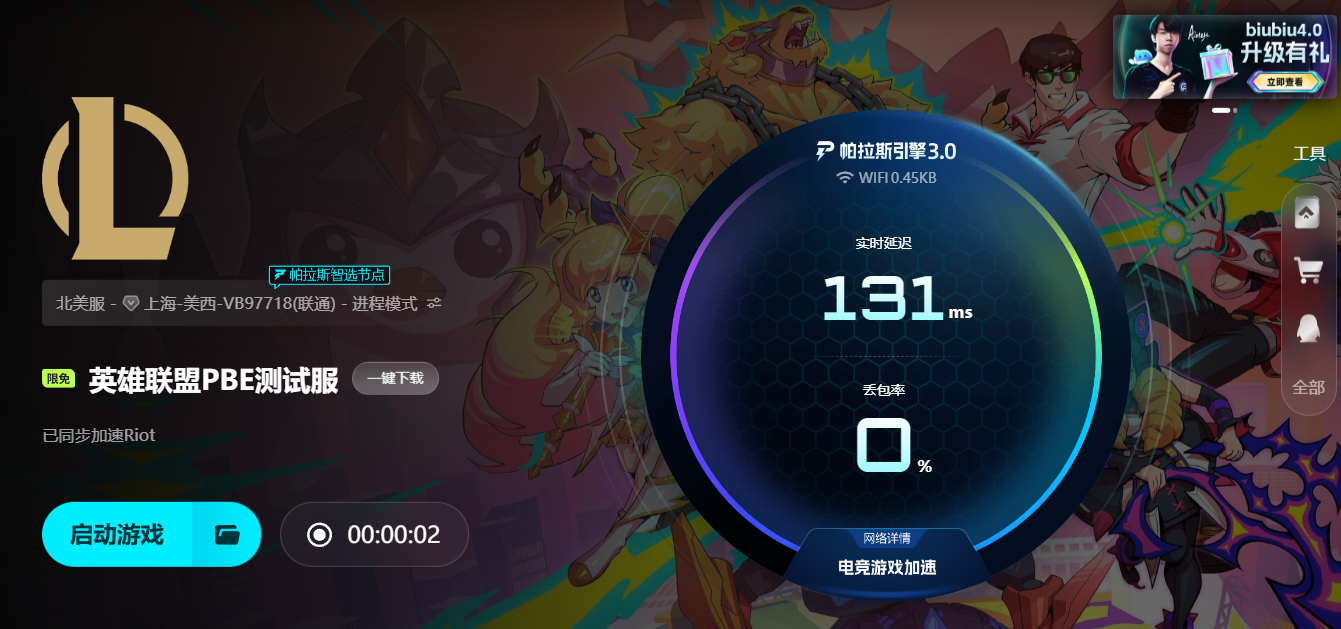 想要順暢體驗PBE服,穩(wěn)定的網(wǎng)絡(luò)連接幾乎是第一道門檻。由于PBE服務(wù)器不在國內(nèi),普通玩家通過常規(guī)網(wǎng)絡(luò)連接PBE時,往往會面臨數(shù)據(jù)傳輸路徑長、跳數(shù)多、丟包嚴重等問題,從而導(dǎo)致游戲中出現(xiàn)卡頓、延遲飆升,甚至無法正常登陸客戶端。尤其是在版本更新、玩家集中登錄時,網(wǎng)絡(luò)壓力加劇,更容易發(fā)生頻繁斷線的情況。這些問題無法通過更換設(shè)備或單純優(yōu)化系統(tǒng)設(shè)置來徹底解決,必須依賴專門針對游戲網(wǎng)絡(luò)路徑優(yōu)化的工具,而這正是biubiu加速器能夠發(fā)揮作用的關(guān)鍵所在。