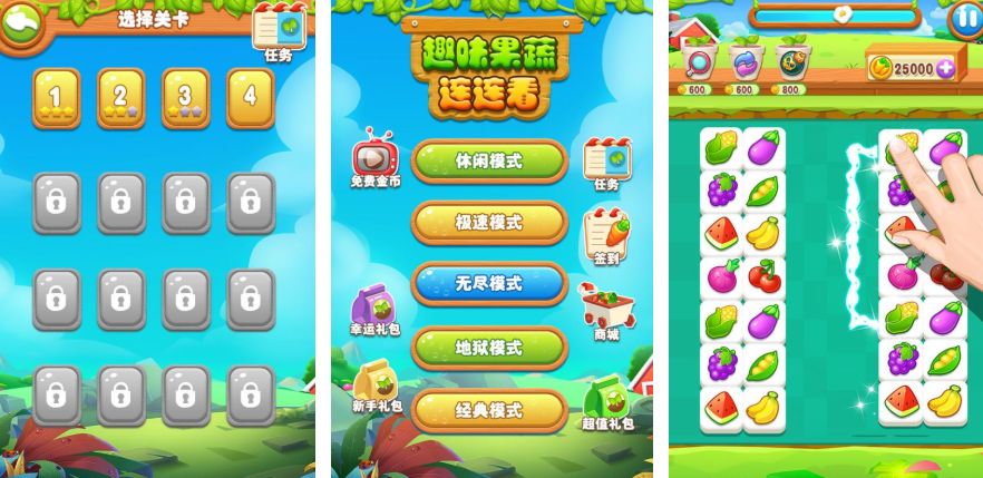 雖然是一款單機(jī)類型的游戲,不過(guò)該游戲有經(jīng)典元素,也有創(chuàng)新元素,讓玩家在體驗(yàn)游戲的時(shí)候直接來(lái)到了夢(mèng)幻般的果蔬天地,這時(shí)候玩家可以認(rèn)識(shí)各種各樣的果蔬。在玩法方面,玩家也可以根據(jù)自己的喜好來(lái)選擇多種模式,其中有休閑模式,極速模式,還有經(jīng)典模式。不過(guò)對(duì)于玩家來(lái)說(shuō),他們?cè)隗w驗(yàn)游戲的時(shí)候可以直接上手,還能夠直觀的欣賞游戲的操作指導(dǎo)。