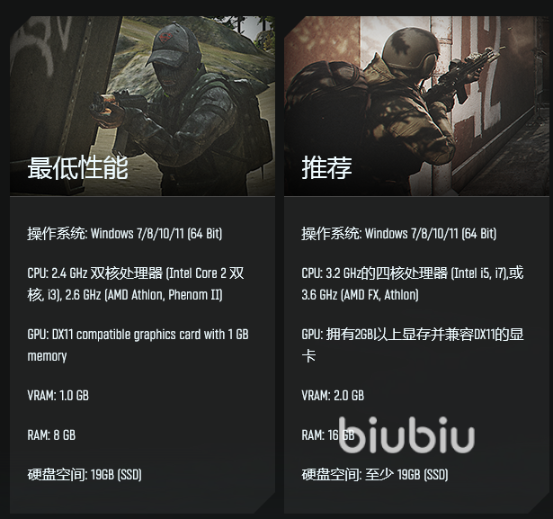 現(xiàn)在這款游戲的硬件要求已經(jīng)非常清楚了,小編在下面的截圖中已經(jīng)給大家進(jìn)行詳細(xì)的展現(xiàn),可以對比一下硬件需求,判斷自己當(dāng)前的硬件是否能夠滿足正常運(yùn)行的要求。其實(shí)對于最基本的要求,大多數(shù)人的硬件都是可以滿足的,只是在畫質(zhì)方面可能需要做出一些犧牲。但是還有一點(diǎn)大家要注意,即使?jié)M足了最佳硬件需求,也不一定就可以流暢的運(yùn)行下去,因?yàn)檫@是一款需要全程聯(lián)網(wǎng)的游戲,而且是硬核射擊作品,對于網(wǎng)絡(luò)的延遲要求很高。為了能夠達(dá)到低延遲流暢運(yùn)行,biubiu加速器是很重要的工具,大家通過上面的鏈接可以直接下載biubiu,然后注冊一個新賬號獲得三小時會員時間。還有一項(xiàng)是兌換碼福利,每個biubiu號都可以通過【biubiu不卡頓】,獲得72小時會員時間。