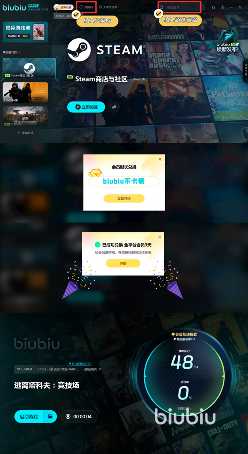 以上就是今天小編帶來的逃離塔科夫競技場配置要求介紹,大家可以對比一下自身現(xiàn)在的硬件水準(zhǔn)來作出決定。如果想要達(dá)到最流暢的效果,那么硬件和網(wǎng)絡(luò)這兩方面都要跟上,硬件只能自己去解決,但是網(wǎng)絡(luò)方面通過今天介紹的biubiu就可以輕松搞定。