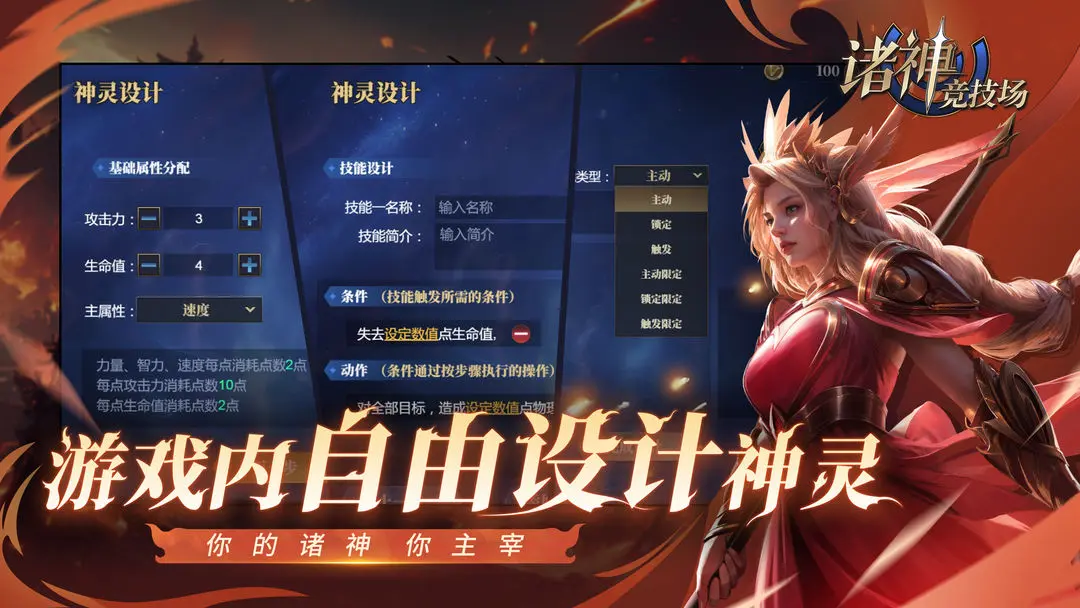 為了提高大家的視覺效果,在這里小伙伴們是可以自由設(shè)計自己的神明的,無論是基礎(chǔ)屬性的分配還是技能方面的設(shè)計,大家都可以自己主導(dǎo),自己的諸神世界自己打造。