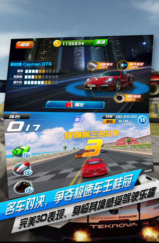 相成為賽車場中的車神受人景仰嗎?在這款游戲中,所有的條件全部具備,你只需要操縱你手中的賽車,超越所有對手,披荊斬棘,將所有對手戰(zhàn)于馬下。游戲還可以重力感應(yīng),讓你的游戲體驗更佳。