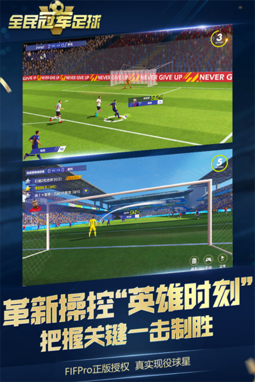 在游戲中,每一名足球運(yùn)動(dòng)員的臉部和體型,都是完全模仿現(xiàn)實(shí)中的運(yùn)動(dòng)員,非常逼真,讓大家第一眼看到的時(shí)候,就有一種很好的代入感。游戲中還加入了幾種新穎的玩法例如“英雄時(shí)刻”,增加了可玩性,而不再是簡(jiǎn)單的兩支球隊(duì)對(duì)戰(zhàn),每一個(gè)球員都擁有自己的特殊能力,球員的位置可以根據(jù)你所掌握的技能進(jìn)行選擇。